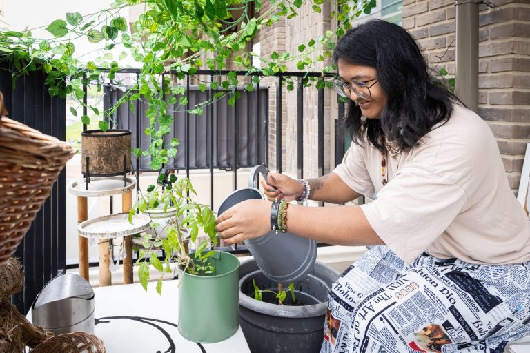 ‘Je voelt echt dat je hier samen leeft, als een gemeenschap. Je komt elkaar tegen en dan is het meteen: “Hee, hoe is het met je?” Je hebt meteen een gesprek. Mensen helpen elkaar ook vaak. Als ik bepaalde buren weinig zie of in een groepsapp mis, dan vraag ik hoe het met ze gaat. De bewoners van BUUR hebben allemaal appgroepen opgericht voor verschillende onderwerpen. Als iemand een berichtje op de app zet dat ‘ie computerproblemen heeft, zijn er meteen een paar mensen die zeggen: ik kom wel even langs. De Gezellige Buren-app gebruik ik het meest. Die groep is zo hecht dat we vaak op vrijdag een berichtje sturen: wie gaat er wat mee drinken? Dan gaan er zo 6 tot 14 bewoners mee. Ik voel me hier erg thuis. Als ik van iets terugkom, voelt het meteen als mijn buurt, mijn buren.’