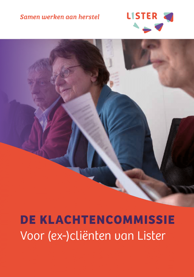 Hieronder staat de folder over de klachtencommissie. Daarin kun je meer lezen over hoe de klachtencommissie werkt. De papieren folder is ook te vinden op Lister locaties.