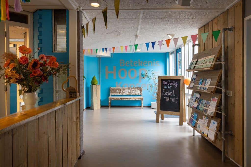 3 dagen later. Om 9 uur zitten er al verschillende mensen in het Trefpunt van Enik in Woerden. Deze jongste Enik-locatie werd 2 jaar geleden geopend in 2 lokalen van Het Baken, een kruising tussen een kerk en een buurthuis. Heel gezellig zijn de ruimtes niet, maar de verwelkomende sfeer maakt dat meteen goed. Peer supporters Nils en Bennie zijn onnadrukkelijk aanwezig, bereid tot een praatje voor wie dat wil.