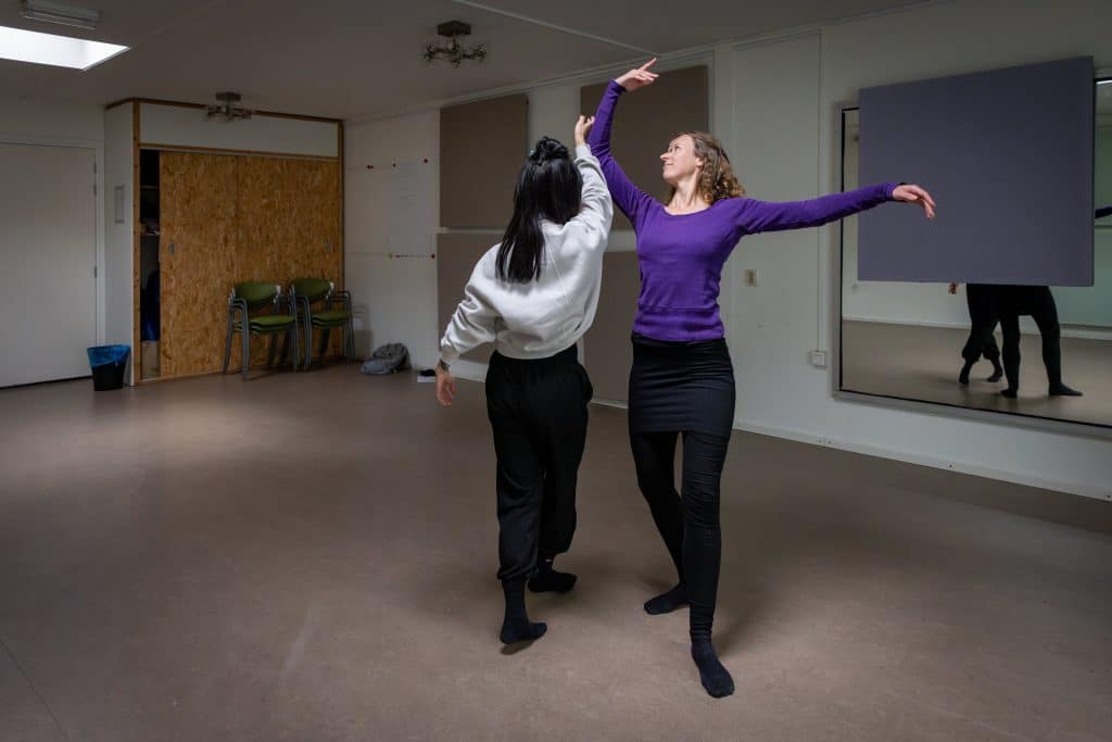 ‘Enik is een fantastische omgeving’, zei Myrthe een paar uur daarvoor, buiten op een trapje. ‘Ik vind het zo mooi dat ik binnen Enik de dingen op mijn eigen tempo en manier kan doen. Ik moet het zelf doen, maar niet alleen. En ik mag struikelen. Toen ik mijn beperkingen – zoals weinig energie – kon accepteren, gaf dat enorme vrije ruimte. Waardoor ik onbeperkt te werk kon gaan.’