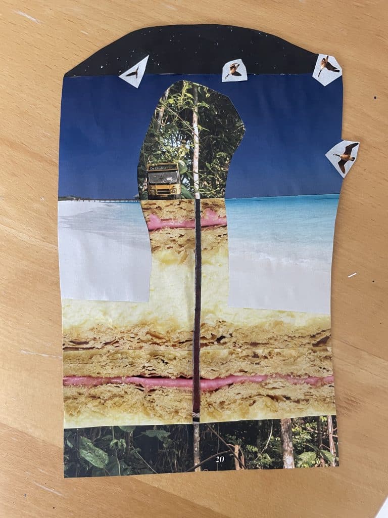 ‘Met dit lespakket ben ik eerst naar scholen gegaan. Tijdens deze 5 lessen liet ik leerlingen kennismaken met hun eigen creatieve interesse en talent. Dat was heel erg leuk om te doen, en af en toe ook wel verdrietig. Zelfs kinderen uit groep 1 hadden al zoveel oordelen over hun eigen maaksels. Ik heb het zien gebeuren dat zo’n kleintje zijn werkje lelijk noemde en verfrommelde – dan breekt je hart.