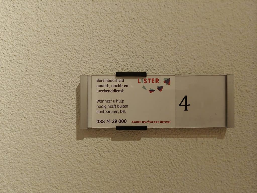 Marijke’s avonddienst begon vandaag om 16 uur. De ANW-hoofden hebben een kantoortje in Enik Recovery College, de herstelacademie van Lister in Utrecht Hoograven. Lister heeft 7 ANW’ers van wie er buiten kantooruren steeds eentje beschikbaar is. Ze ondersteunen vooral de medewerkers op de locaties waar 24-uurszorg is. Daar is in de avonden, nachten en weekeinden steeds een eigen wakende of slaapwacht aanwezig.